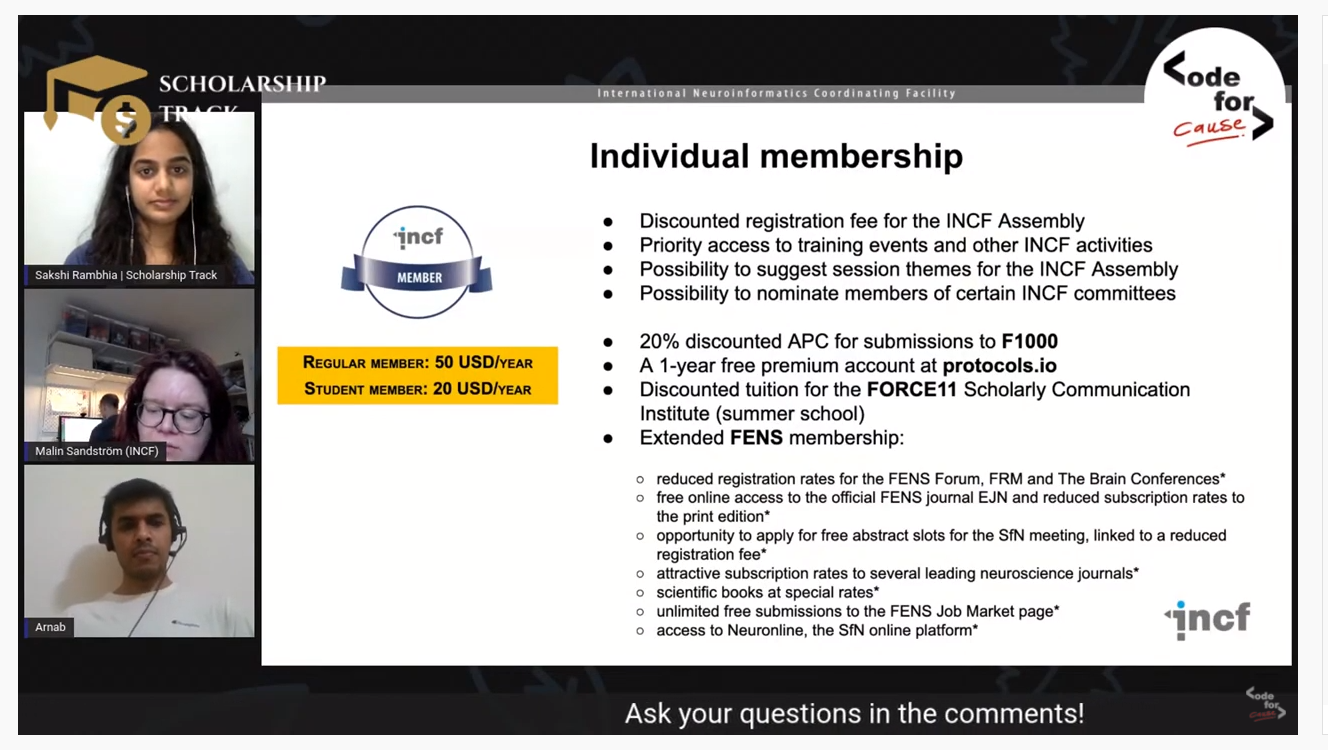 We recently presented INCF’s participation in GSoC 2021 in a series called “Spring ofCode” by Code of Cause. The video recording is available on Youtube, here.
